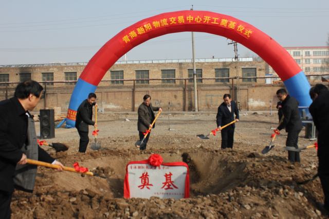 2014年2月25日10時16分,青海朝陽物流交易中心開工奠基儀式在朝陽物流園區(qū)項目建設(shè)現(xiàn)場如期舉行。奠基儀式由青海朝陽物流有限公司工會主席漆海寧主持。青海省物產(chǎn)集團總公司總經(jīng)理王玉輝、投資經(jīng)營部部長劉延虎,青海朝陽物流開發(fā)投資有限公司總經(jīng)理王俊杰、副總經(jīng)理喇軍民以及青海朝陽物流有限公司副總經(jīng)理史巖、青島沿海建筑設(shè)計有限公司副總經(jīng)理侯林森、蘭州華鐵工程監(jiān)理咨詢有限公司西寧分公司總理孔祥海、甘肅省建筑基礎(chǔ)工程公司總經(jīng)理任建成參加了奠基儀式。