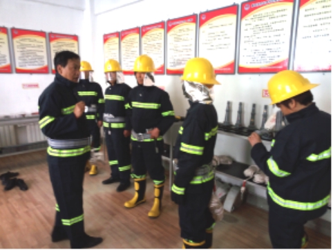 現場演示微型消防站防護用具的穿戴及使用方法,進一步細化了滅火戰(zhàn)斗組、救援組各所屬人員的責任分工,并對各類防護、逃生、破拆工具的實際用途做了詳細的講解說明。
