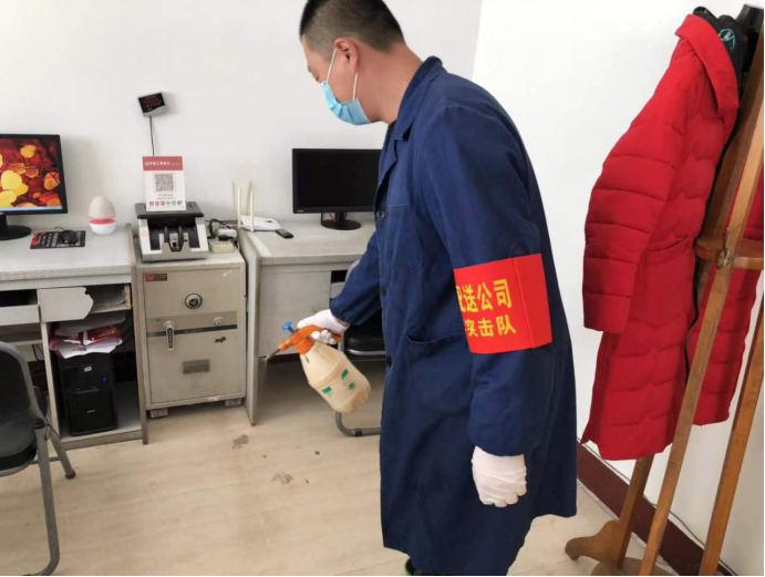 物產(chǎn)配送公司青年突擊隊(duì)抓好排查、有效防控,對(duì)公司19名團(tuán)員青年外出情況(包含外出地點(diǎn)、航班車次、居住地點(diǎn)、身體狀況等)進(jìn)行精準(zhǔn)摸排,對(duì)在崗員工每日兩次體溫測(cè)量進(jìn)行詳細(xì)登記。按時(shí)對(duì)3000平米辦公場(chǎng)所和生產(chǎn)經(jīng)營(yíng)區(qū)域每日定期清潔消毒工作,在奪取防控斗爭(zhēng)勝利中爭(zhēng)當(dāng)排頭兵!