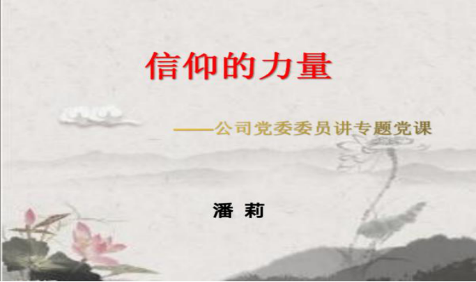 公司黨委委員、紀(jì)委副書記潘莉同志以《信仰的力量》為題講專題黨課。黨課從"信仰可以使強(qiáng)大的對手臣服;信仰可以升華世界上最偉大的愛;信仰缺失可以讓一個民族失去方向"三大主題闡述了信仰的力量是無窮的,堅定的理想信念,永遠(yuǎn)是激勵我們奮勇向前、克難制勝的不竭力量源泉。