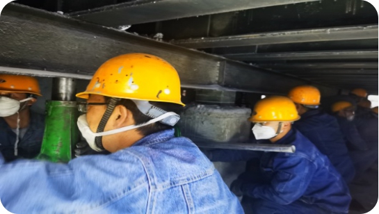在公司黨委副書記、總經(jīng)理王兆明和副總經(jīng)理、生產(chǎn)黨支部書記王海林同志的帶領(lǐng)下,電解車間、設(shè)備管理部、生產(chǎn)安全管理部、檢修車間40余名黨員、干部、職工克服了高溫強(qiáng)磁和作業(yè)空間有限等諸多困難,僅用一周時間對30臺槽殼出現(xiàn)水平失衡的電解槽進(jìn)行了同步調(diào)整。