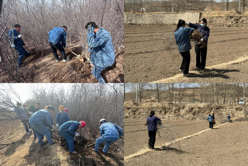 活動前期,公司領導班子成員根據物產北川工業(yè)物流園實際情況提前謀劃,多頻次與大通縣孫家寨村溝通,將該村“退林還田”亟待處置的桃樹和紫丁香樹等綠植資源整合接洽,并有規(guī)劃、有步驟地移栽回園區(qū)各處。