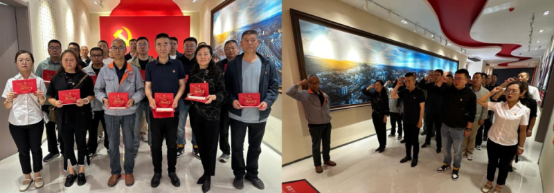參觀結(jié)束后,全體黨員面對黨旗,莊嚴宣誓,重溫入黨誓詞,公司黨委書記王兆明為在場的黨員同志發(fā)放政治生日賀卡,并贈予政治生日祝福。