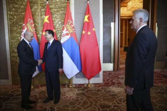李克強總理與塞爾維亞代表團成員握手,
