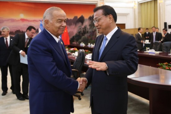李克強總理會見烏茲別克斯坦總統(tǒng)卡里莫夫時說:"中烏可以在雙方感興趣的領(lǐng)域廣泛開展產(chǎn)能和裝備制造業(yè)合作。"