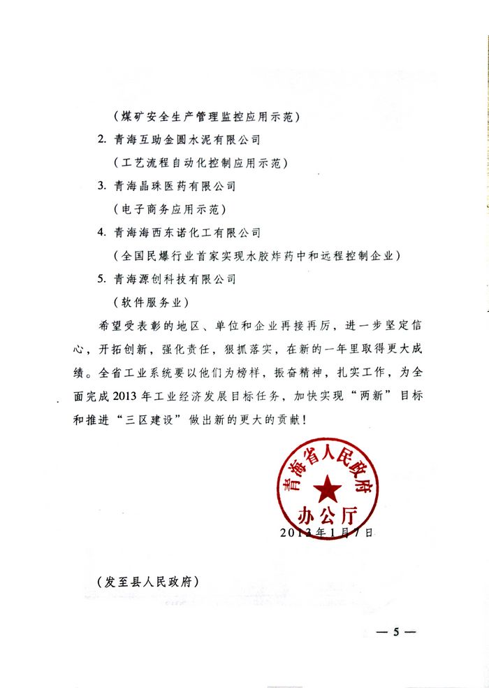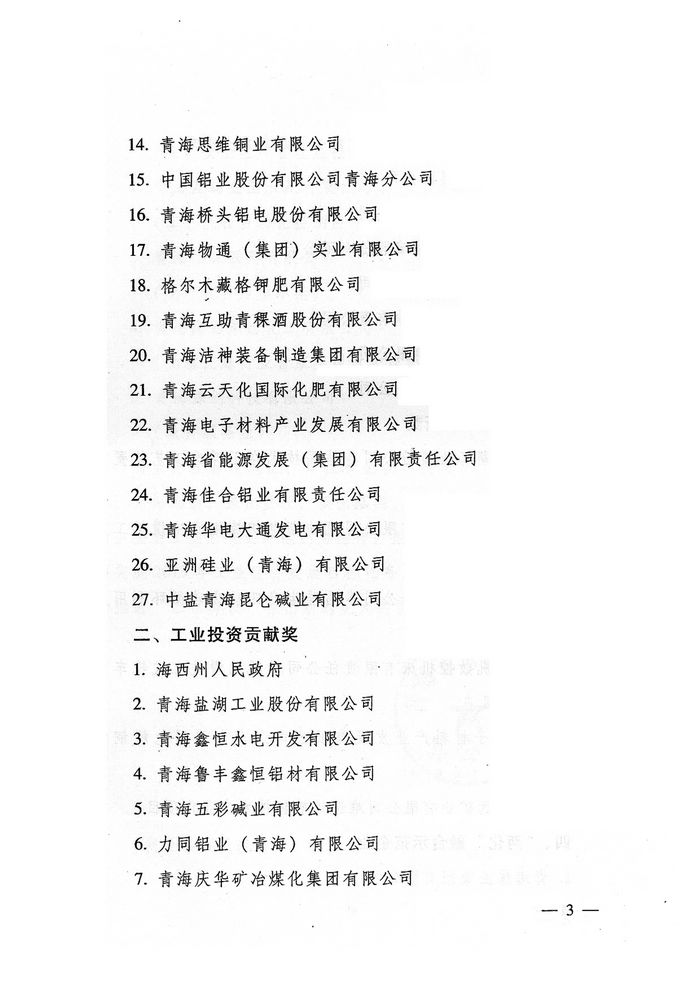 集團(tuán)榮獲2012年度青海省人民政府“工業(yè)投資貢獻(xiàn)獎(jiǎng)”
